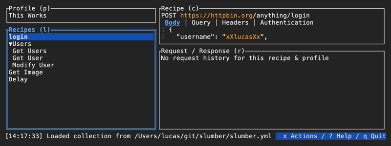 Slumber is a configuration-first, Terminal User Interface (TUI) HTTP client.